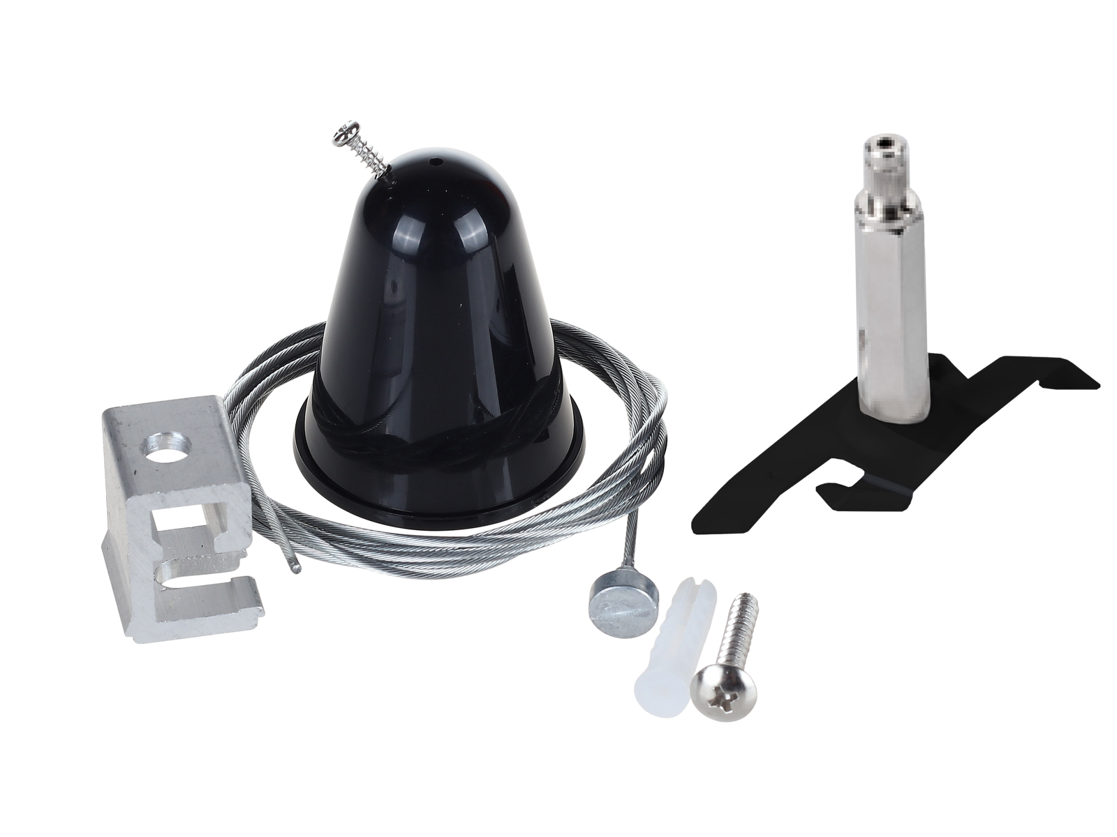 Dette wire-ophængssæt til PRO Track-skinner er udviklet til nedhængt montering af PRO Track Rail skinnesystemer, hvor der er behov for større nedhæng eller montering i rum med høj loftshøjde. Sættet leveres med en wirelængde på 4 meter, hvilket giver maksimal fleksibilitet i justering af skinnehøjden.