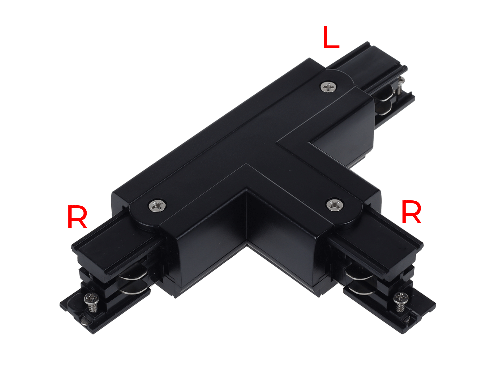 T-samlingen sikrer, at strømføringen fordeles korrekt i alle retninger, og giver stor fleksibilitet ved opsætning af komplekse skinneløsninger.