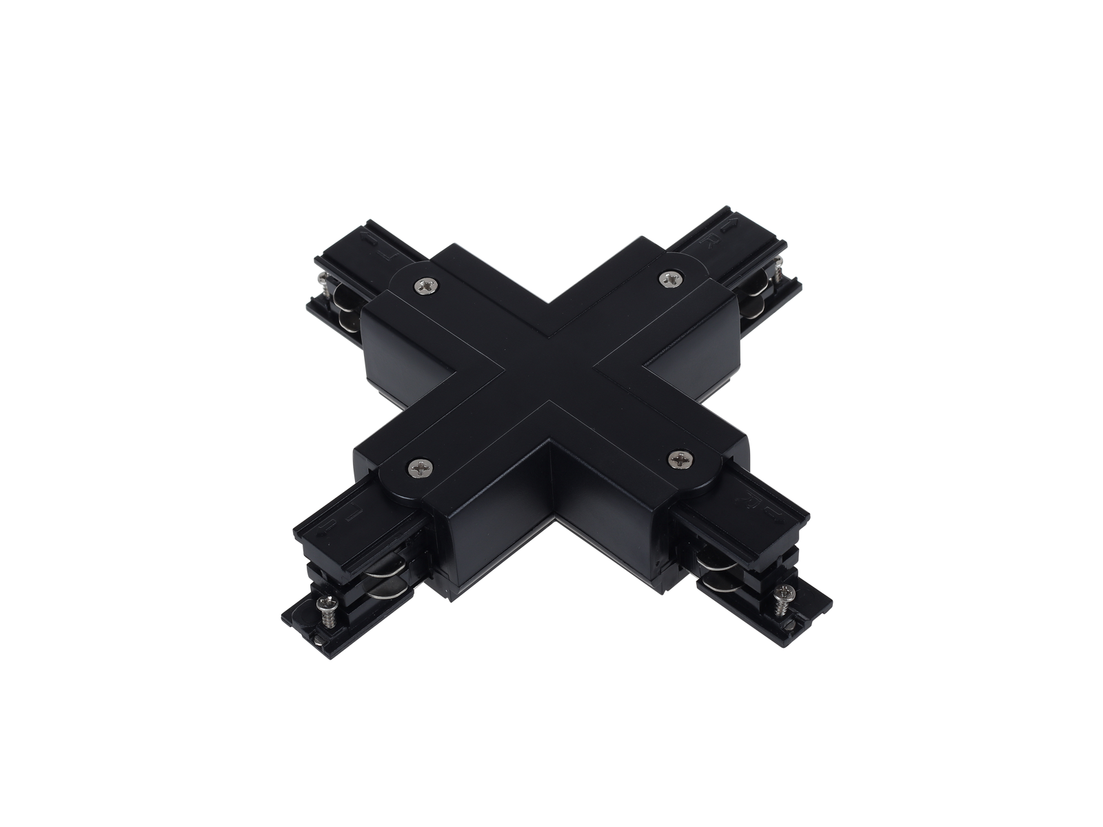 Denne Track Rail X-samling – 3-faset er en professionel koblingsløsning, der anvendes til at forbinde fire Track Rail skinner i et kryds. X-samlingen giver maksimal fleksibilitet i udformningen af komplekse belysningsinstallationer og sikrer samtidig korrekt faseføring og stabil strømtilslutning i 3-fasede systemer.
