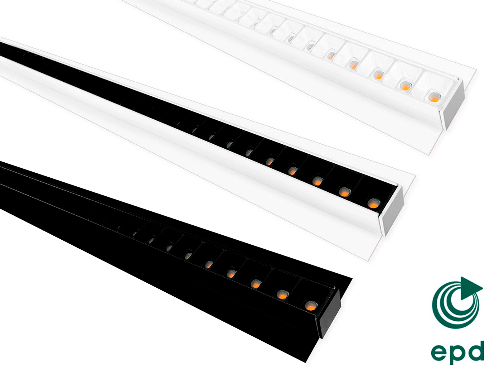Skinnerne fås i tre farvekombinationer, hvor dem med sort reflektor har UGR<16, og dem med hvid reflektor har UGR<19.