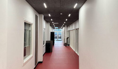 Udover fitness- og træningslokaler er green:ID LED lysskinnerne også opsat andre steder i den nye bygning. Flere gangarealer og møderum i Rødding Centret oplyses ligeledes af disse LED lysskinner.