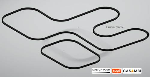Med dette 48V skinnesystem kan man skabe belysning i ekstra lange længder, i flere former og formater samt med mange forskellige typer af lamper, som via magnetbeslag nemt flyttes og placeres i skinnerne.