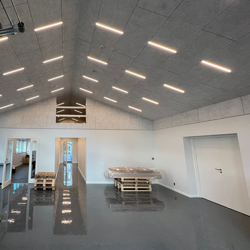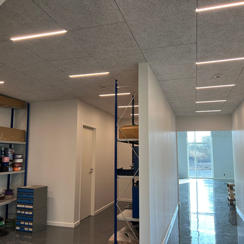 De unikke LED lysskinner, som er special designet til montering i Troldtekt-lofter, er et yderst populært valg, særligt i nybyggede kontor og firmabygninger.