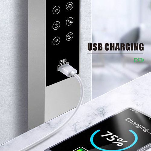 I touch-panelet er der også et USB lade-stik til fx opladning af mobiltelefon.