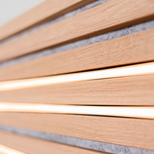 green:ID lancerede derfor i 2022 ”LAMEL-LED” som er et nytænk koncept med LED lysskinner special designet til diskret integrering i filten mellem trælamellerne.