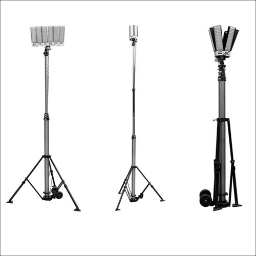 På toppen af teleskopstellet monteres 6 stk. fleksible og yderst kraftige green:ID LED projektørlamper. Disse projektørlamper kan justeres på flere forskellige måder, og har 360° lys som leverer hele 600W / 60.000 lumen.