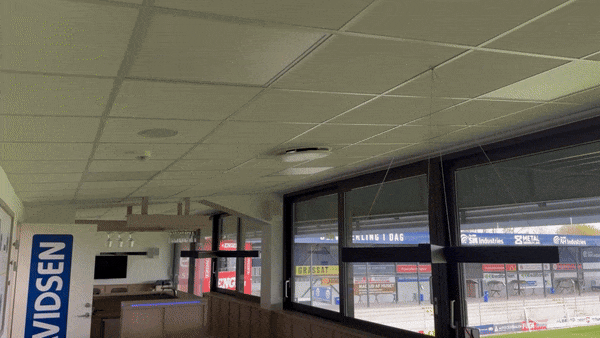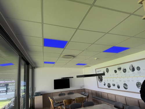 Via denne løsning blinker de indbyggede LED paneler i klubbens lounge når hjemmeholdet scorer - og farven er naturligvis klubbens blå farve🔵
