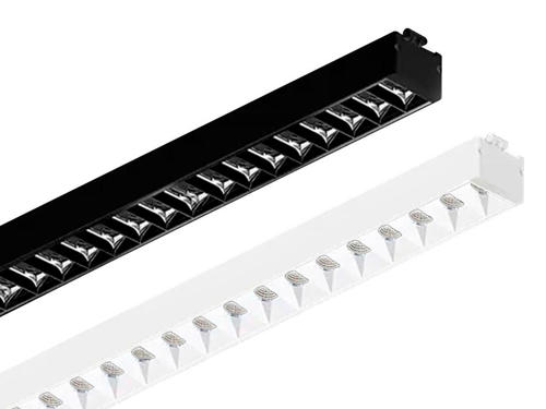- Sorte LED lysskinner med en UGR-værdi på 16