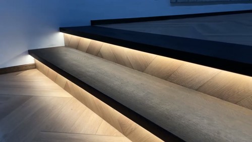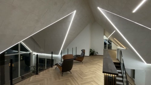 LED bånd i monteringsskinner er blevet en del af boligindretningen og danner ramme om en unik helhedsoplevelse.