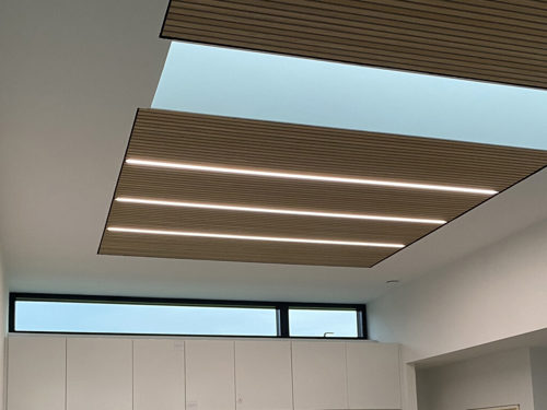Udover at anvende dem til indbygning i Troldtekt lofter, har der også den seneste tid været en stor efterspørgsel efter disse monteringsskinner ved projekter, hvor de populære trælameller er opsat som loftbeklædning.