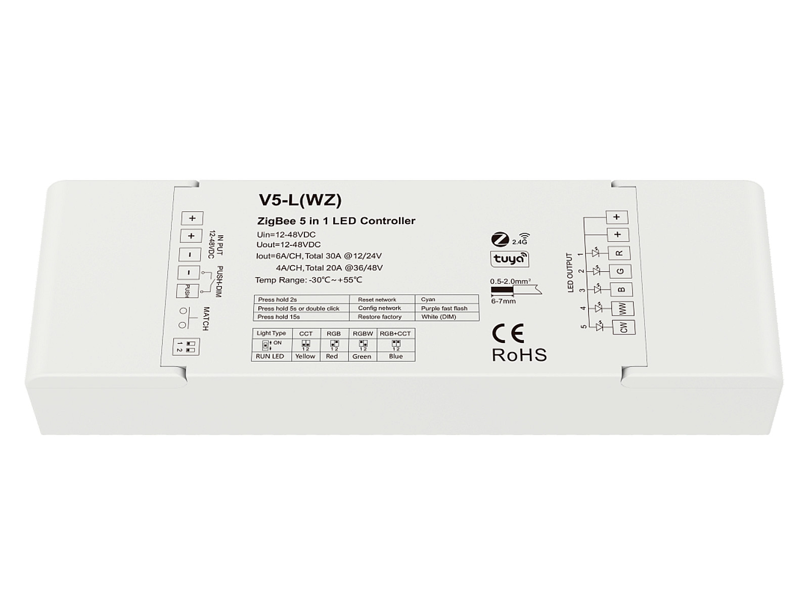 LED 5-kanals controller. Zigbee 3.0. 2.4Ghz og PUSH dæmp