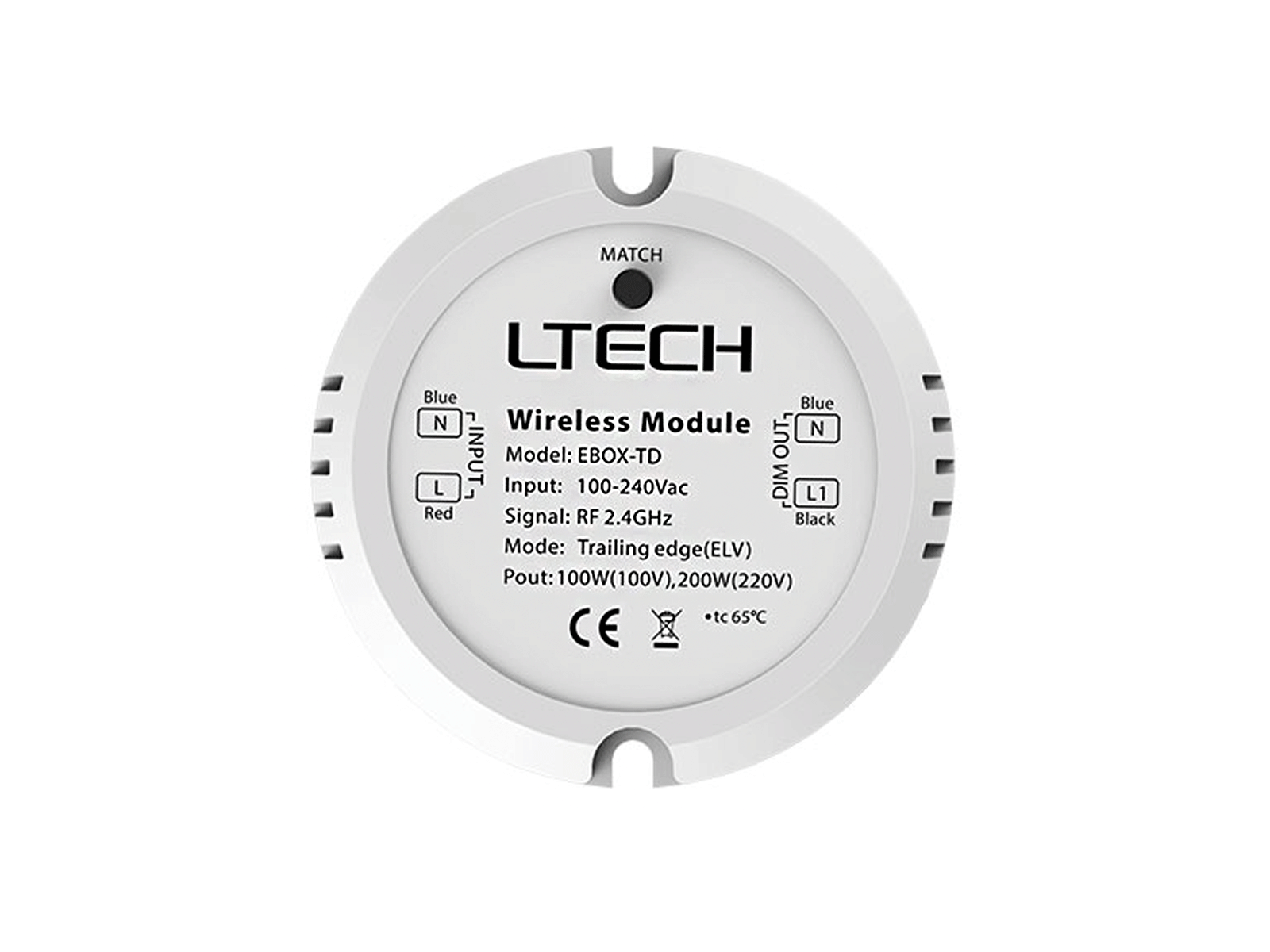 LTECH EBOX-TD er en controller, der gør det muligt at trådløst betjene og dæmpe LED produkter (der er TRIAC dæmpbare).