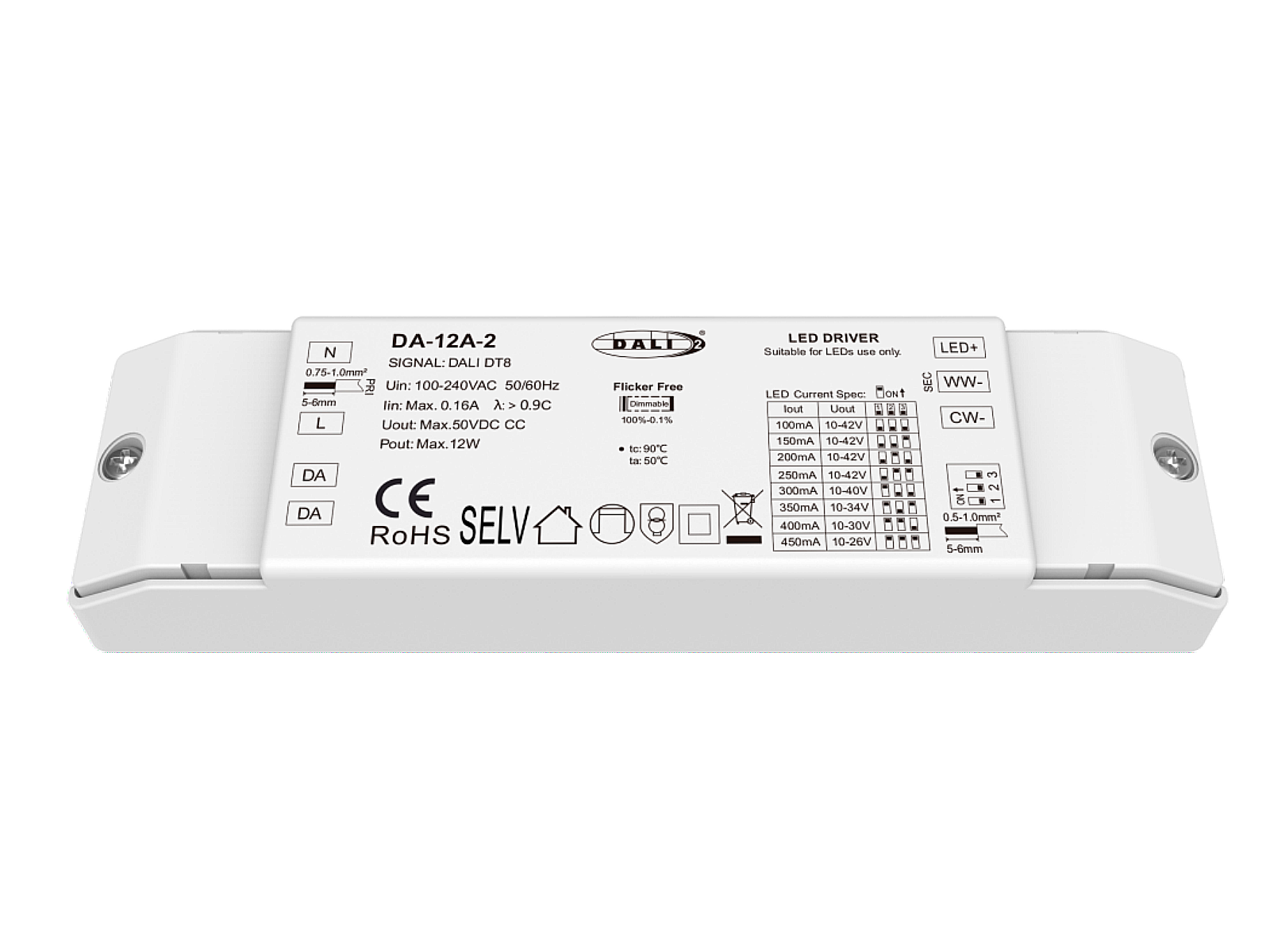 LED dæmpbar driver DALI-2 DT6/DT8 2-kanals CC 12W 100-450mA