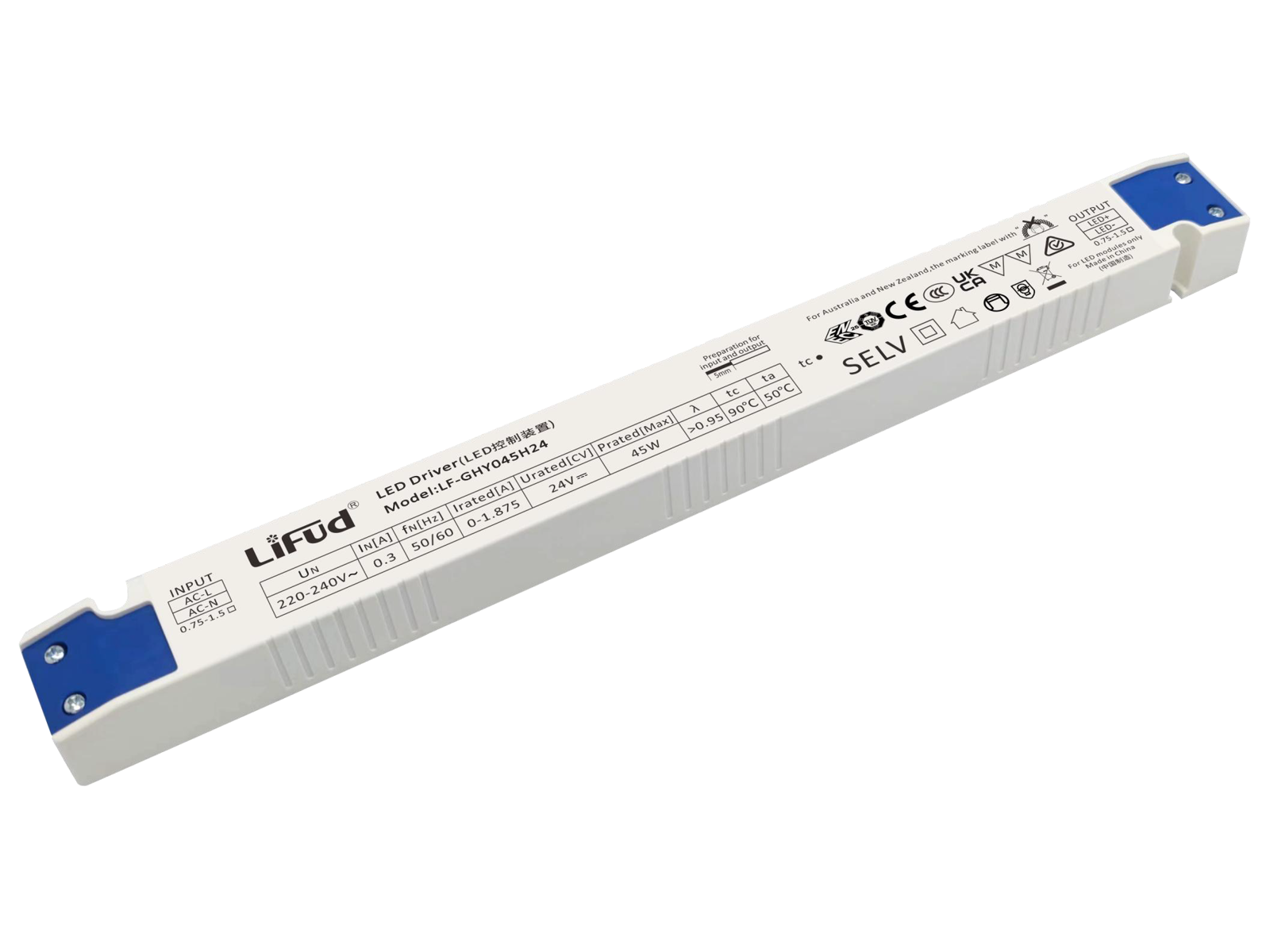Flimmerfri constant voltage 24V ikke-dæmpbar driver i plastic-kabinet med 5 års fuld garanti. Produktet har følgende standarder/godkendelser: UL FCC CE CB ENEC RCM SAA MM CCC