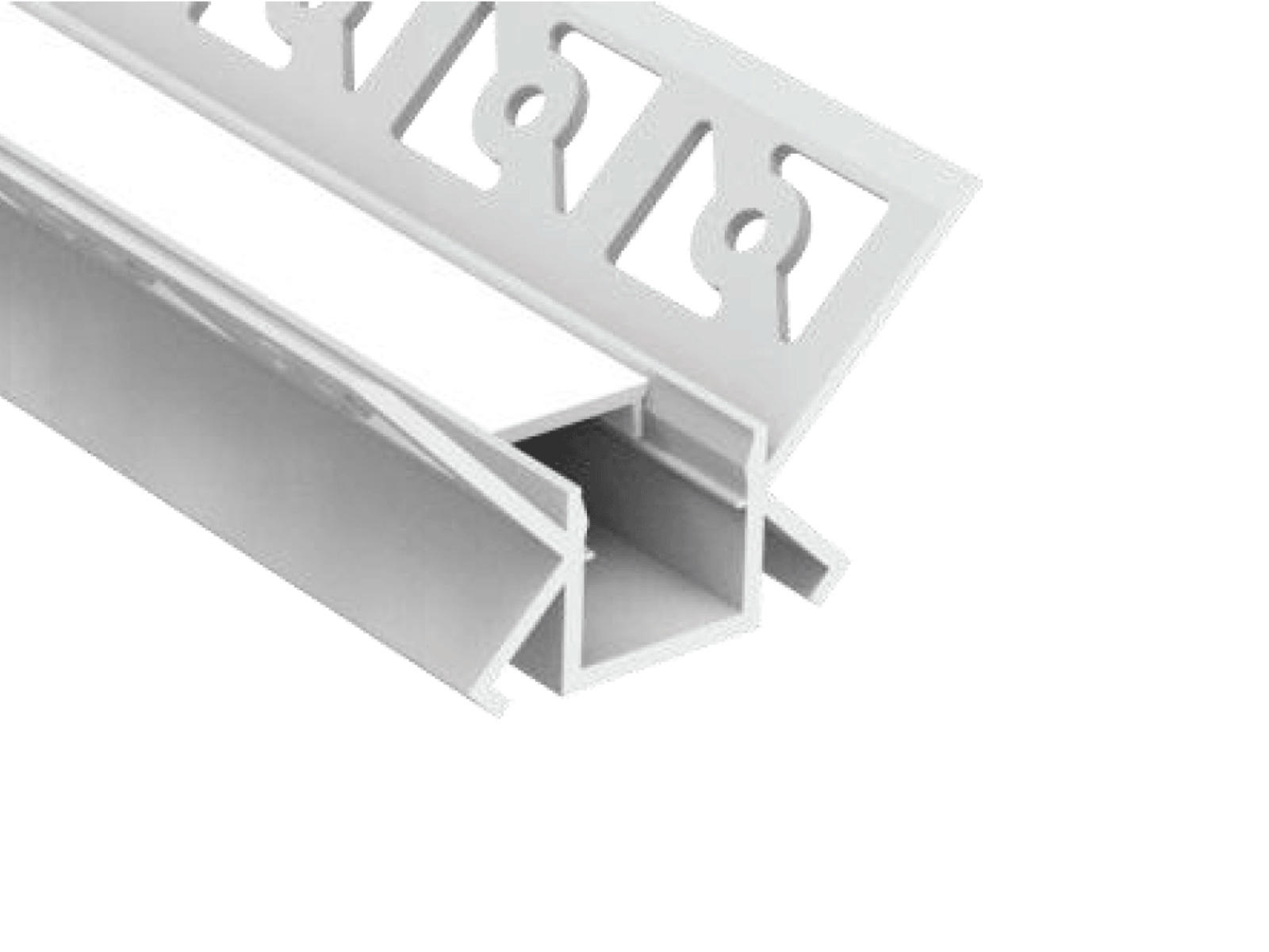 Hjørne indbygnings-aluskinne for LED strip. 180 cm. (48x26 mm) inkl. cover