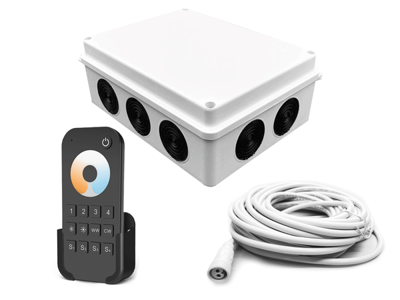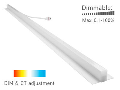 Dobbelt-dæmpbar CCT versionen kan både kan reguleres i lysstyrke samt kelvin-lysfarven kan reguleres (via fjernbetjening)
