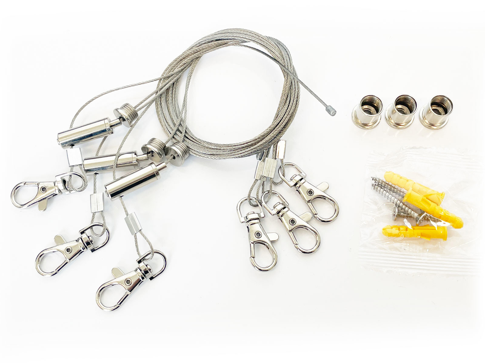 Kryds-wire er afstemt efter panel-størrelse, og loftwiren har en længde på 3 m.