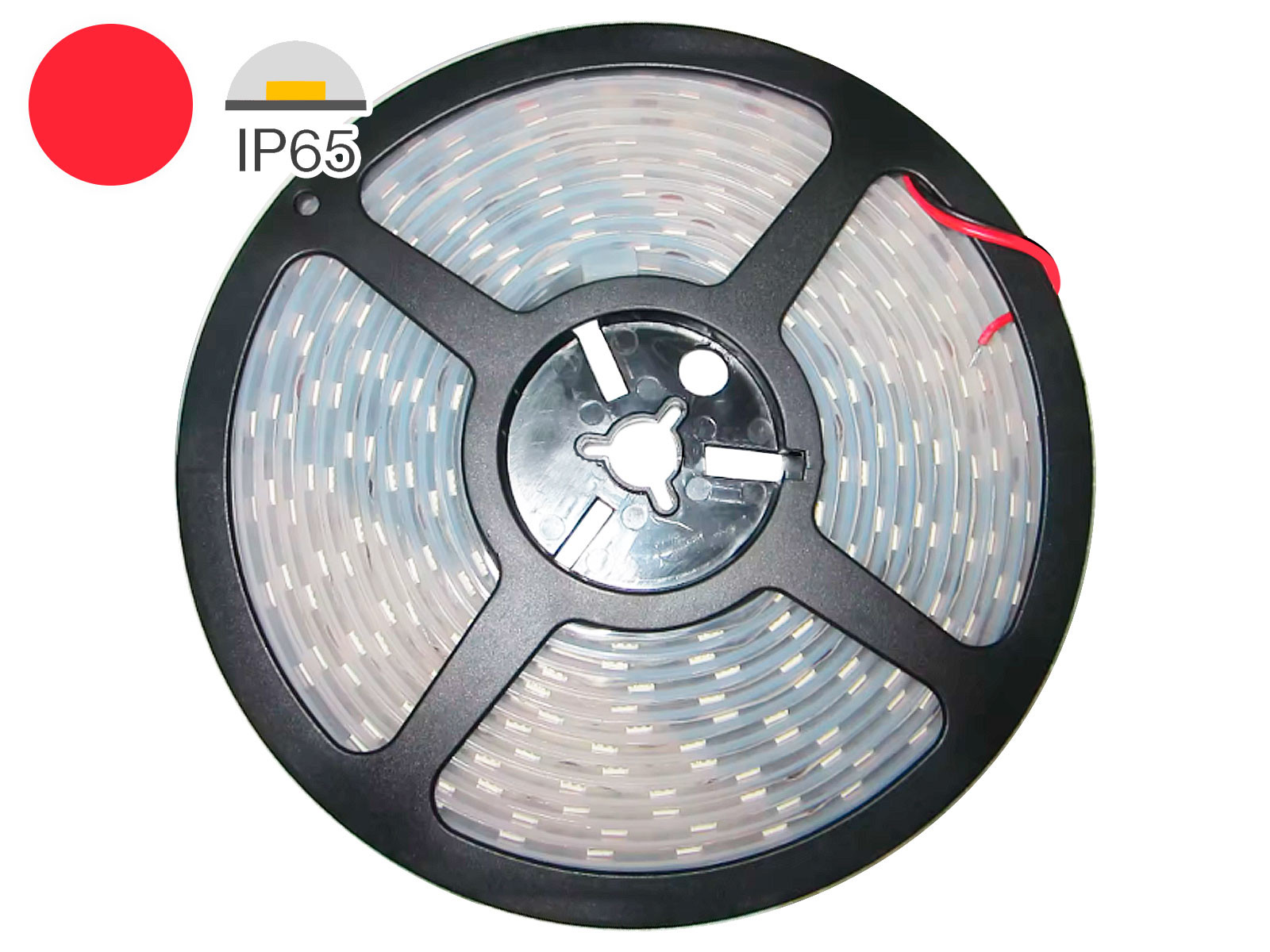 LED strip 24V. 5 m. RØD 5W/m. IP65. 10mm PCB. 50 cm. 0.5mm2 ledning begge ender